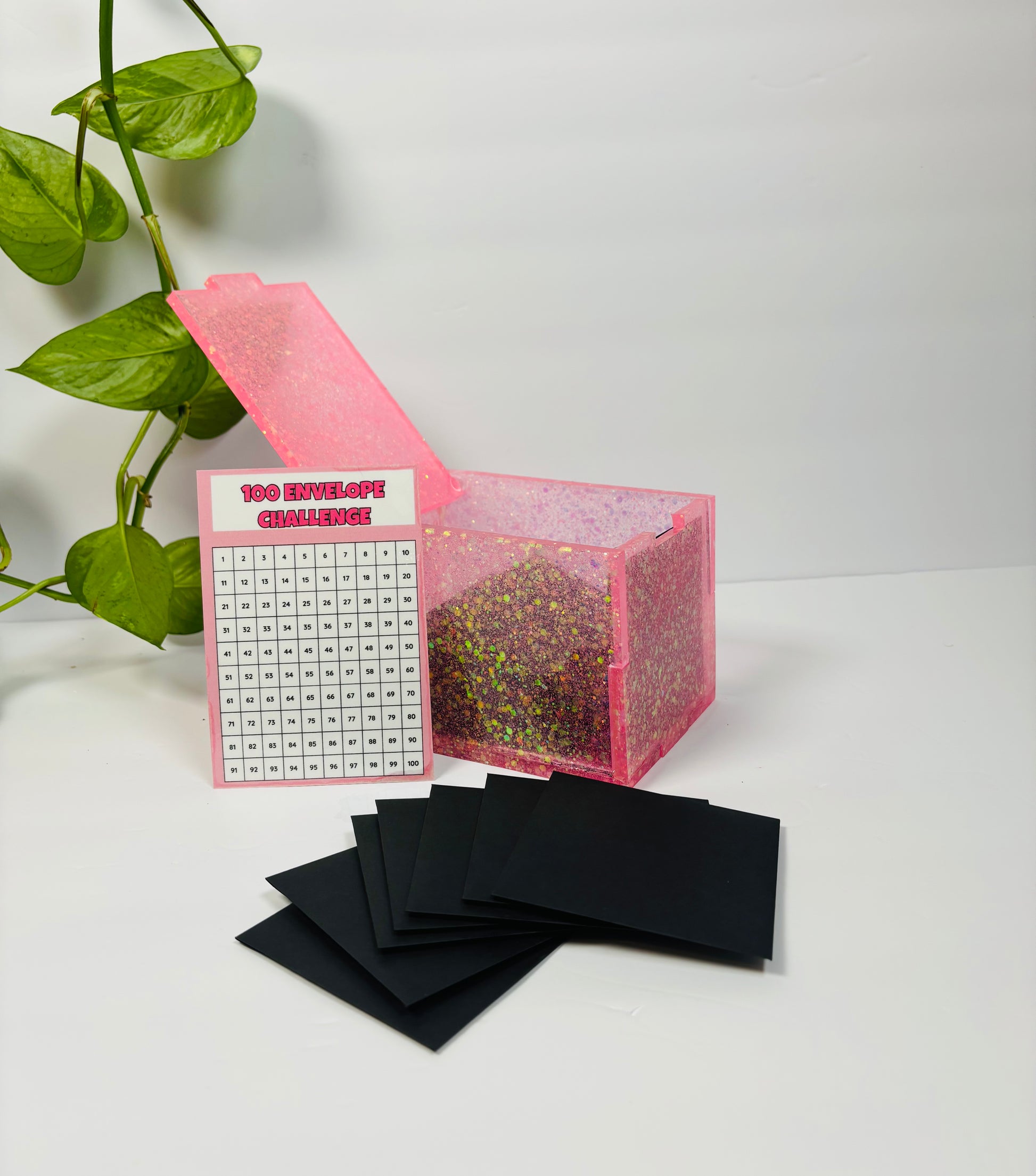 Transform your savings journey into a stylish adventure with our Custom Color 100/52/26 Envelope Challenge Box. Perfect for anyone looking to save money in a fun and organized way, this customizable savings box helps you stay on track while adding a glittery pop of color to your space. Whether you're saving for a rainy day, a special purchase, or just to stay motivated, this money-saving box makes it easier than ever.